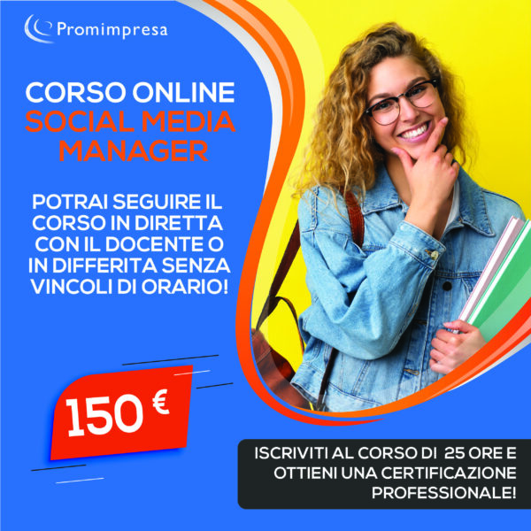Il Corso Online per Social Media Manager di Promimpresa ha una durata complessiva di 25 ore suddivise in 10 lezioni di didattica teorica, esercitazioni pratiche e case studies.