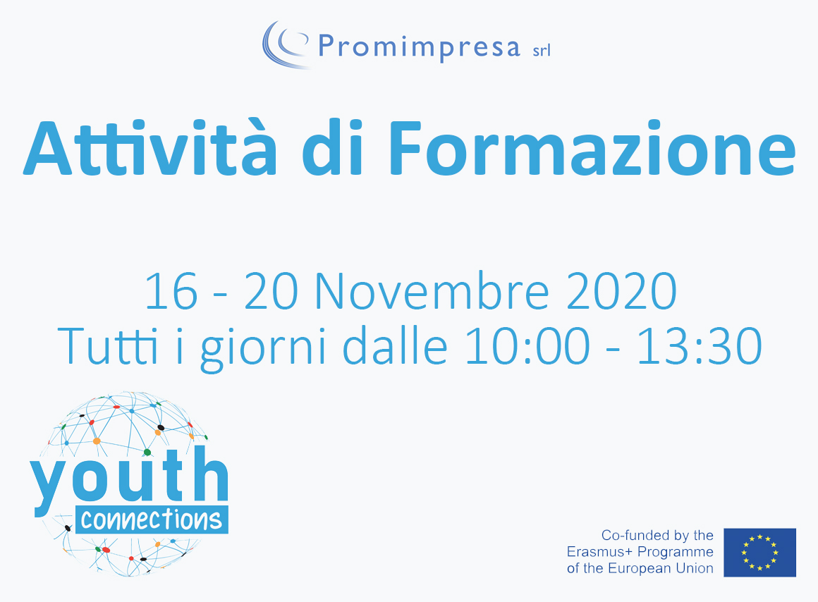 Abbiamo il piacere di invitarti all’attività di formazione online del Progetto Erasmus+ Youth Connections (2019-2-UK01-KA205-062270) che si terrà online dal 16 al 20 Novembre 2020.